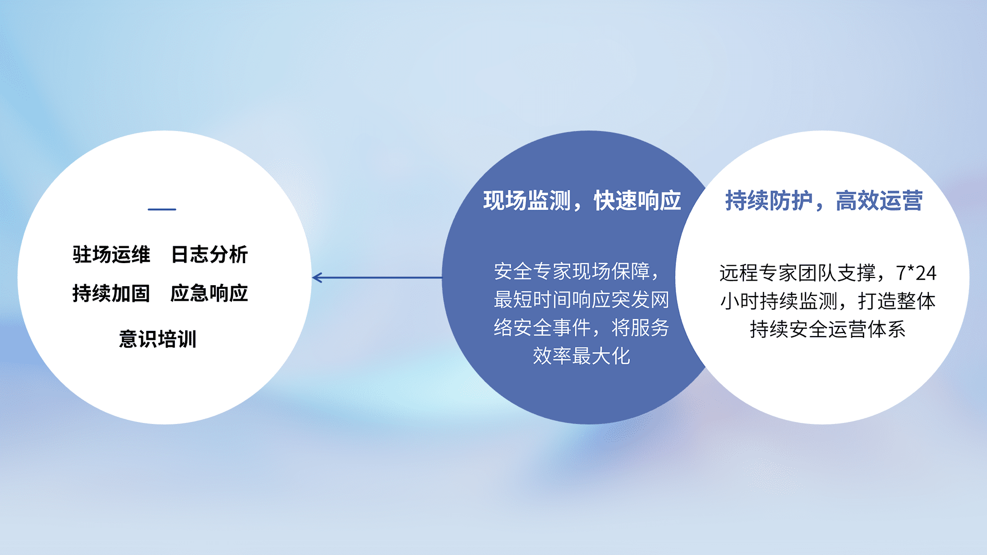 针对客户行业特性,,提供专属的一站式安全管理服务,,,,帮助客户全面感知网络空间威胁,,,通过安全专家的线上、、、线下防护支持,,,,实现风险闭环,,,将安全保障常态化,,为客户打造常态化安全运维运营服务。。。。